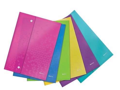 Różne kolory teczek kopertowych ułatwiają segregowanie różnych tematów