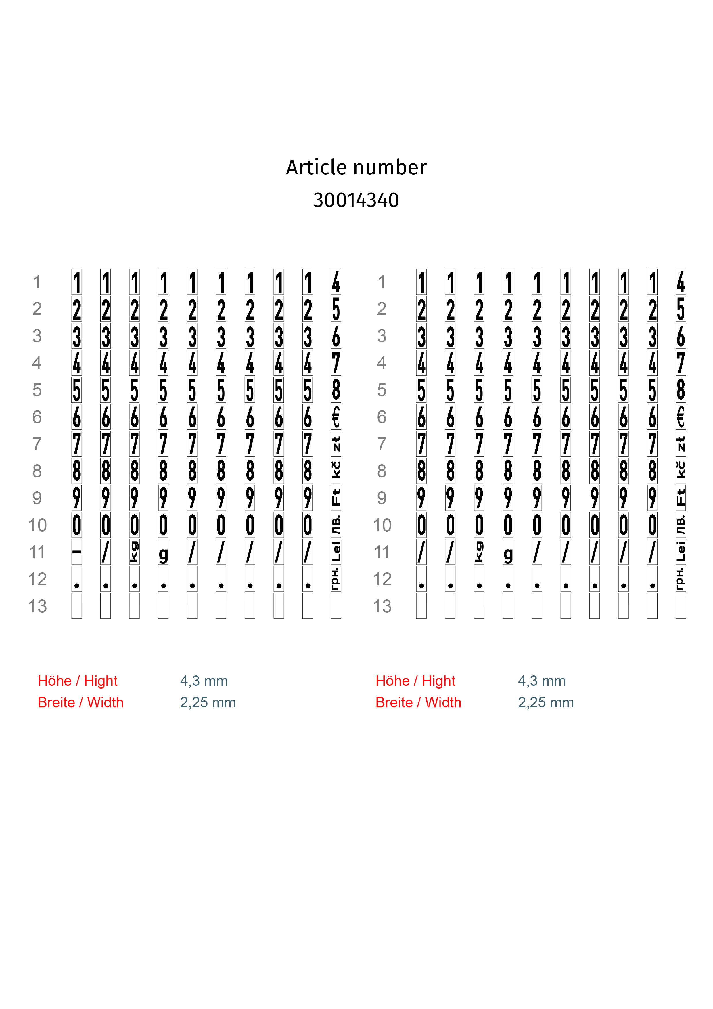 • Siedem symboli walut (zł, Lei, Ft, Kč, €) i znaki wagi (kg, g)